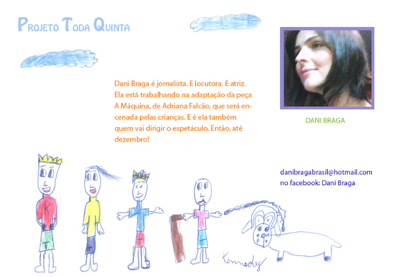 Fiquei sabendo que na última reunião da equipe do Toda Quinta ganhamos mais dois parceiros: Lino e Alessandra. Em nome de todos já vou dizendo: Sejam bem vindos e muito obrigada pelo apoio! Eu, infelizmente não pude participar desse encontro, estava numa “leseira” só, uma mistura de dor no estômago com não sei mais o que. Mas agora estou ótima. E não quero parar. Ah, quero aproveitar para apresentar e agradecer também ao importante apoio da minha assistente no palco, a Ludmila Rios, minha prima que nasceu lá em Araxá, que nem a Ana Cândida, e nem sei se elas se conhecem. Bom, acho que é isso. Pelo menos por enquanto.
